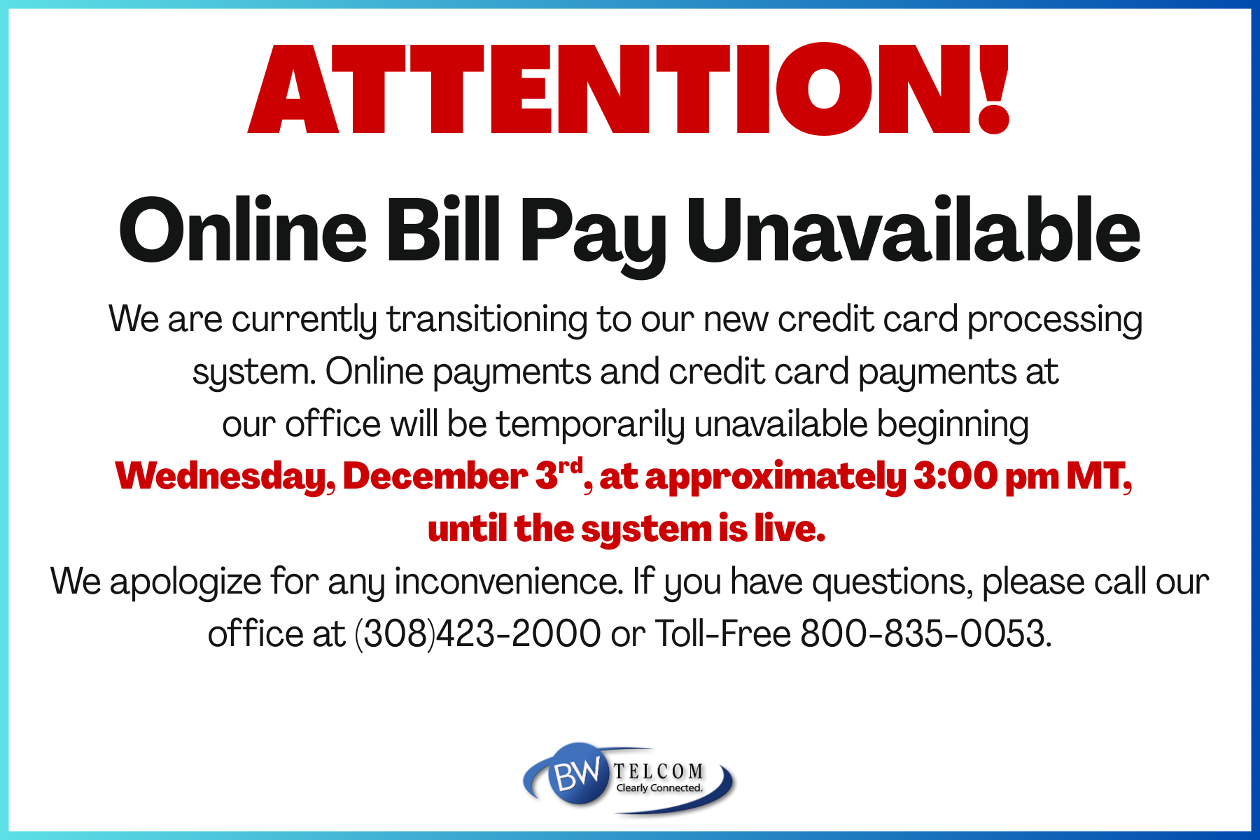 Forget writing checks and searching for stamps. BWTelcom gives you an easier way to pay your bill. The online bill payment system allows you to: