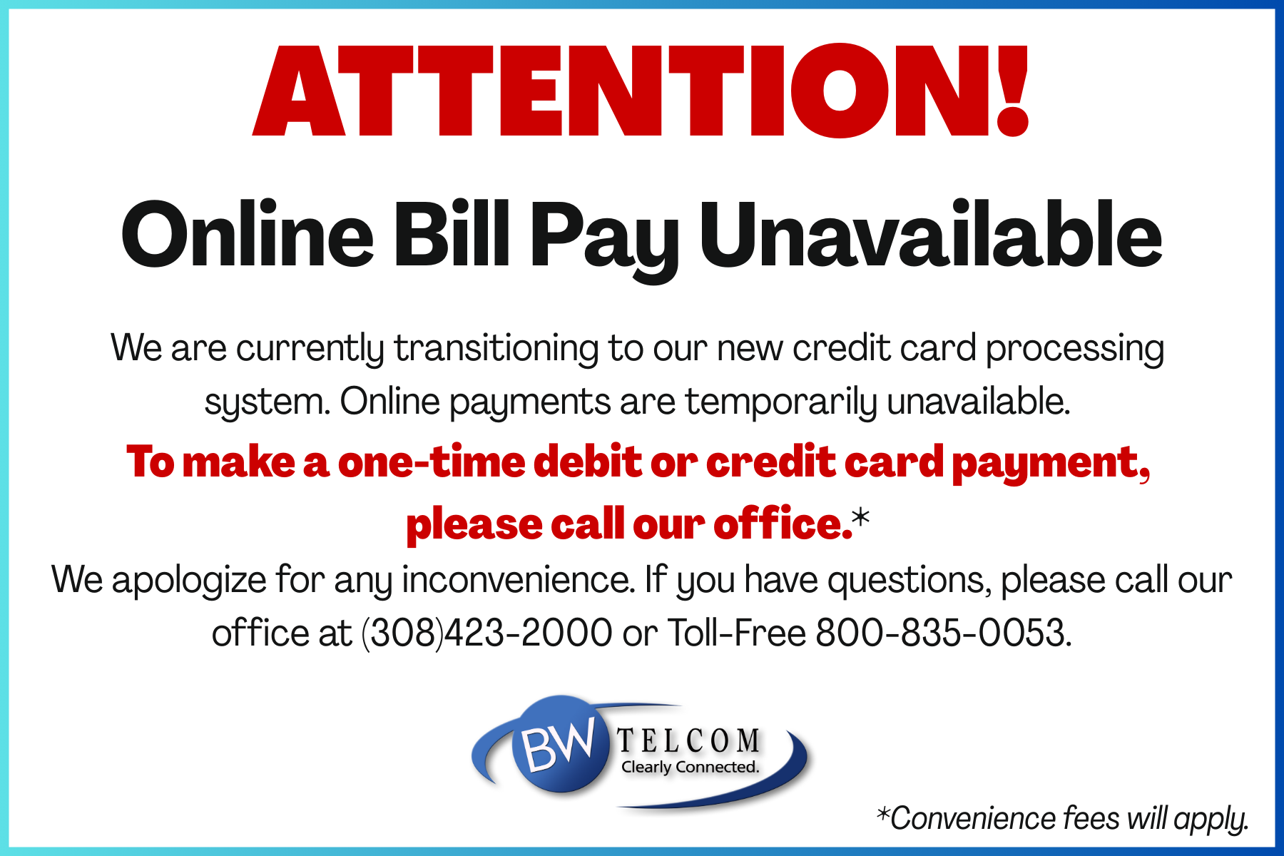 Forget writing checks and searching for stamps. BWTelcom gives you an easier way to pay your bill. The online bill payment system allows you to: